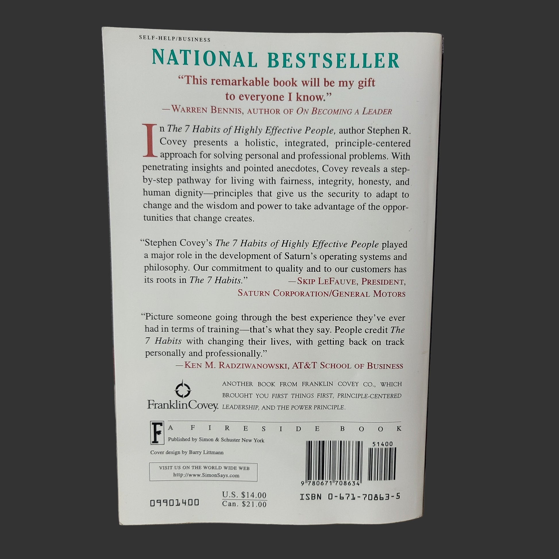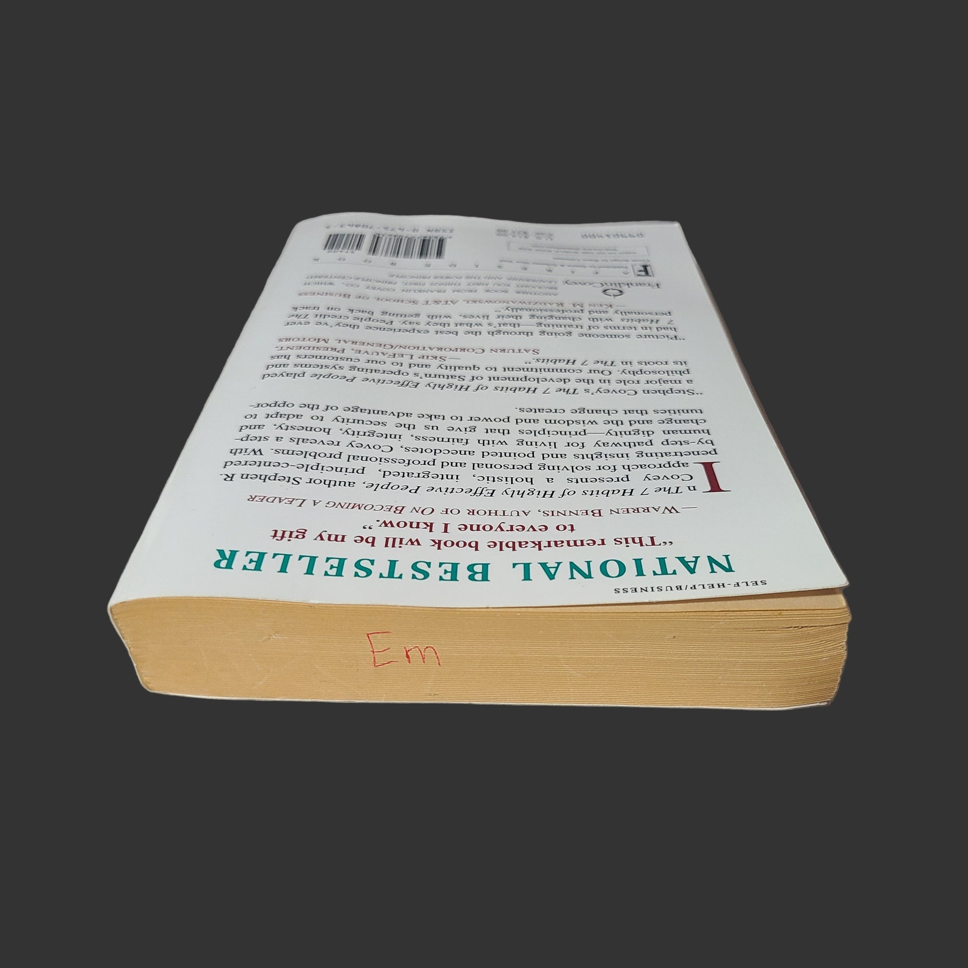 Discover timeless wisdom with this used copy of "The 7 Habits of Highly Effective People" by Stephen R. Covey, originally published in 1989. This classic guide offers practical principles that can transform your personal and professional life. Learn how to develop habits that foster independence, collaboration, and continuous growth. Owning this edition means benefiting from the foundational strategies that have empowered millions to achieve lasting effectiveness. Embrace proven techniques to enhance your productivity and relationships with this influential book.