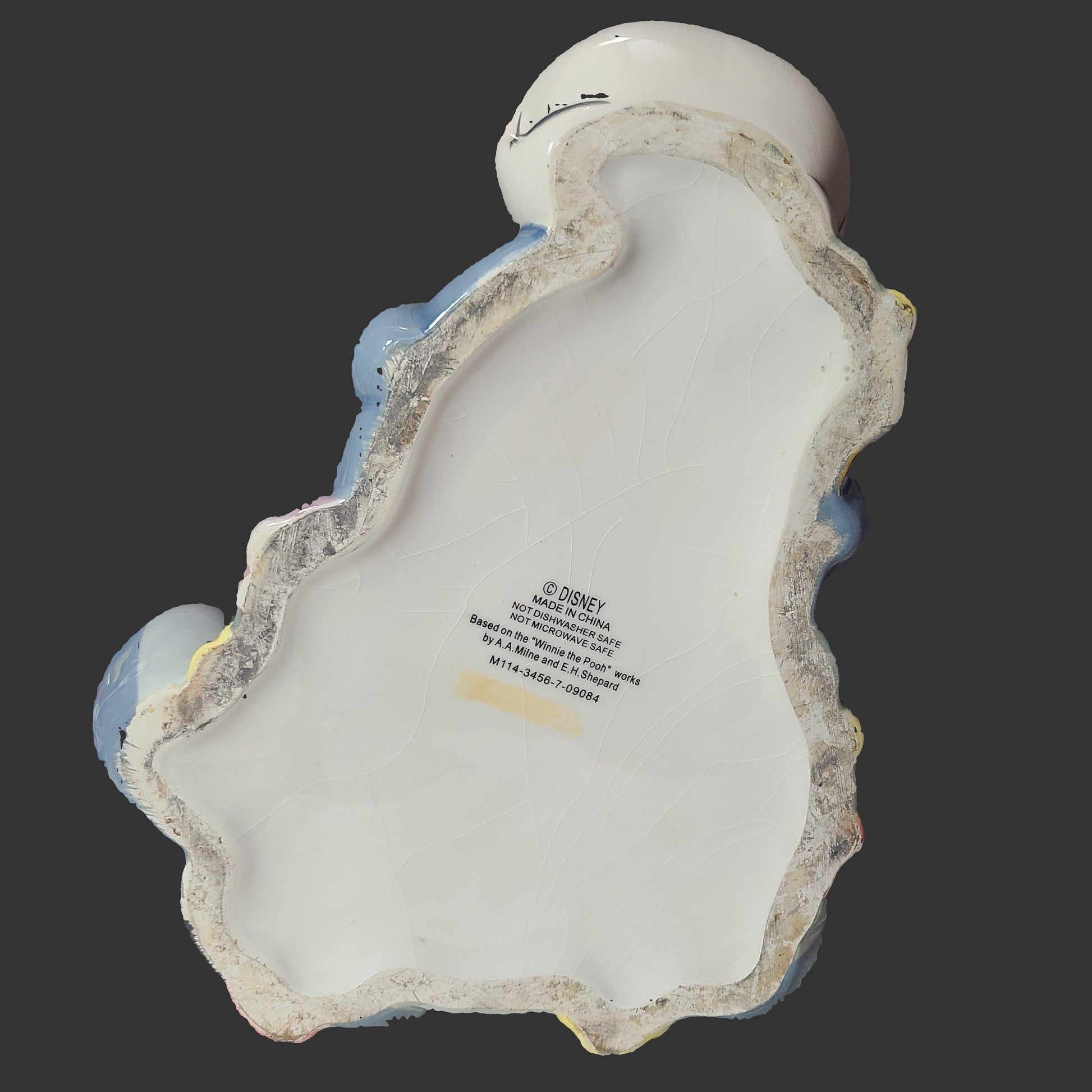 Capture timeless charm with this vintage Disney Eeyore ceramic cookie jar. Crafted with care, it brings a touch of nostalgia and whimsy to your kitchen while keeping your treats fresh. Its classic design appeals to collectors and Disney fans alike, making it both a functional kitchen accessory and a delightful display piece. Embrace the joy of Eeyore and add character to your home with this unique, gently used find.